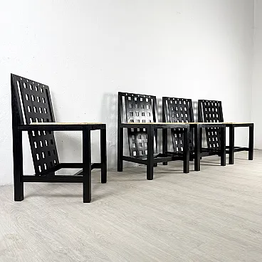 Material: Rovere wood tinted in black, rope seat, mother -of -pearl inserts.