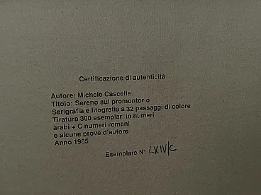 Even through this work of graphics we can see the extraordinary technical value of Michele Cascella's work, the whole structure is determined by a very complicated, almost divisionist, who gives shape to things, creates volumes, measures space and, of course, records every smaller light and chromatic perception. The result is a composition that, in addition to showing a great skill from the point of view of the drawing, identifies the vibrations of light on objects and their interaction in the atmosphere.