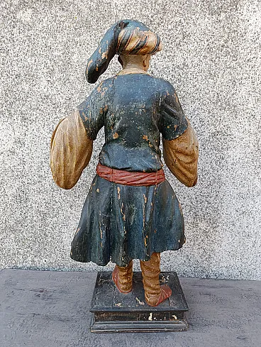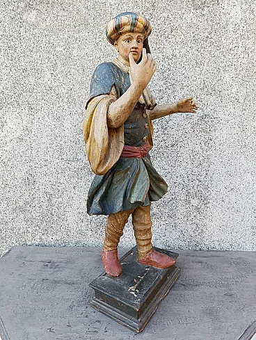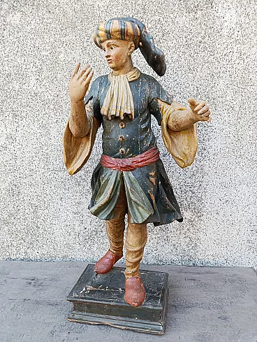 Polychrome wooden sculpture depicting Paggio era early 700, glass eyes. Height measurement 95