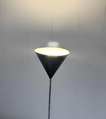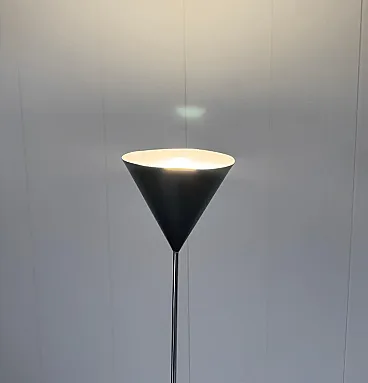 Iconic lamp of Italian design, Diegnata in 1953 by Luigi Caccia Dominioni and produced by Azucena is the floor lamp mod. LTE also known as "Funnel" because of the shape of its lampshade Metal and brass frame, painted aluminum lampshade. Vintage condition, small defects on lampshade