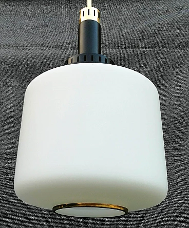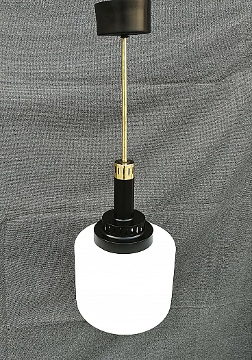 Stilnovo, suspension lamp in frosted glass and structure in painted metal and brass. 50s. Conditions: very good.