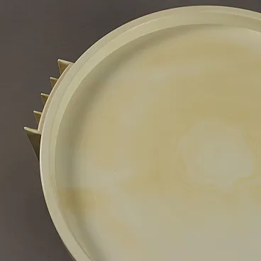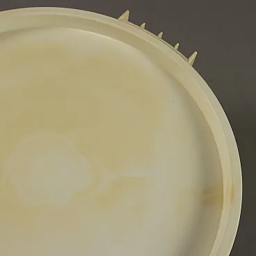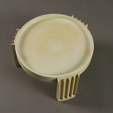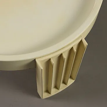 Side table with circular top and three legs made entirely of white plastic material.