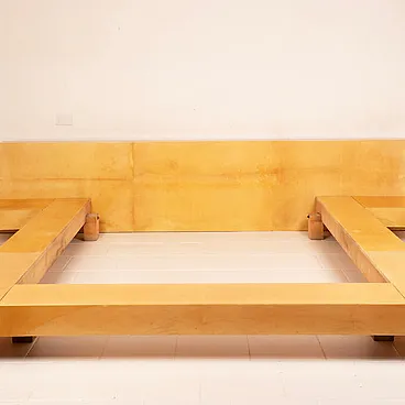 A majestic and unrepeatable work of Aldo Tura, this double bed of the 1960s represents one of the maximum expressions of the radical and sophisticated aesthetic of the great Milanese designer.