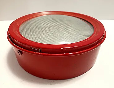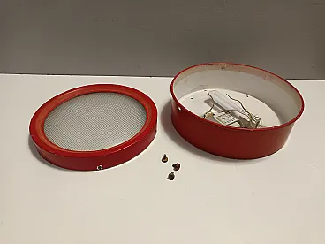 Red Metal and Glass Ceiling Light model 3055 by Gino Sarfatti for Arteluce, 1962