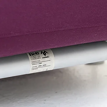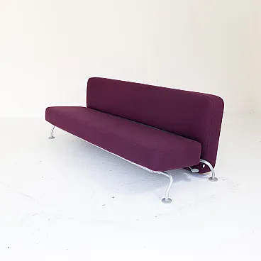 Elegant "Lunar" model sofa bed designed by James Irvine for B&B Italia - Maxalto. Characterized by a light gray painted metal structure and a sober and modern line, this sofa easily transforms into a comfortable single bed thanks to the retractable integrated mechanism. The seat and the back are covered in intense purple fabric, in perfect condition, without defects or discolors. The padding is compact and comfortable, ideal for both daily use and occasional bed. The curved tubular feet give lightness to the structure and enhance its contemporary aesthetic. Original label present under the body. In excellent general conditions. The "Lunar" sofa was designed and produced in the early 2000s, precisely around 2002.