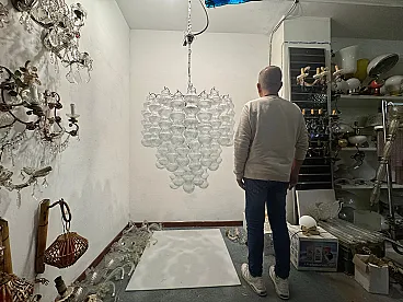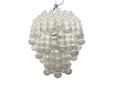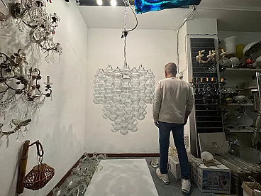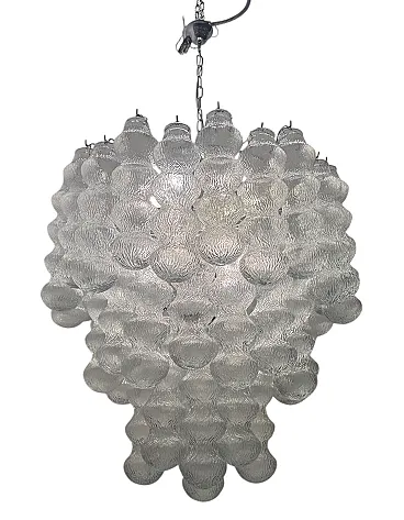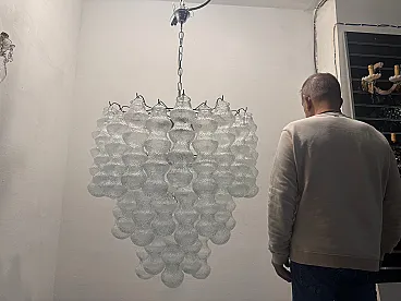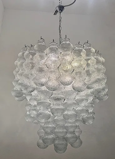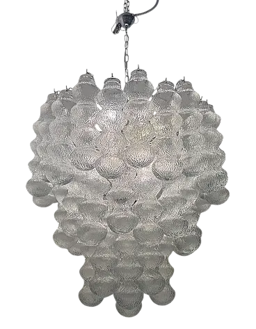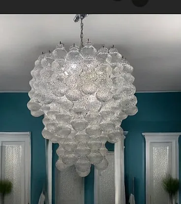 Additional item Information - Extra Large Vintage Murano -Style Glass Chandelier, 1980s This Impressive Extra Large Glass Chandelier from the 1980s is a Striking Example of Sculptural Lighting Design. Composed of 48 Individually Crafted Textured Glass Tubes, The Piece Evokes The Craftsmanship and Aesthetic of Murano Glassork, Arranged in Voluminous Tiered Formation that creates a Stunning Visual Impact. The Chandelier is fitted with 12 E14 Light Sources, offering amplellumination While Casting a Warm, Diffused Glow Through the Delicatel Ribbed Glass. Its Scale and presentce make it ideal for grand interiors, Whereher suspend in a double-height entryway, Above in Stairwell, or in a refined Hospitality setting. Fully Rewired and Ready for Use in EU, UK, and US INTERIORS, This Piece Merges Vintage Elegance With Modern Functionality. Specifications: • Origin: Italy, 1980s • Style: Mid-Century / Hollywood Regency • Materials: Clear Textured Glass, Metal Frame • Number of Lights: 12 • Bulb Type: E14 (Not Included) • Dimensions:-Height with Chain and Canopy: 142 cm-Height Without Chain: 85 Cm - Diameter: 83 cm • Condition: Excellent Vintage Condition; New Wiring Installed to Meet Modern Standards • Wiring: Compatible with EU, UK, and US Systems Weight 30/35 Kg This Chandelier is a Sophisticated Lighting Piece—Both Decorative and Highly Functional—Tht Will Alto Any Interior With ItsLess Glamor and Arteal Quality.