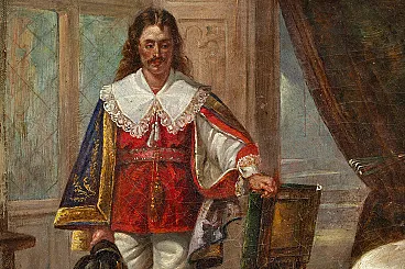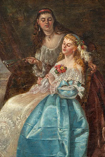 Description: Ancient painting oil on canvas depicting a gender scene in a aristocratic environment belonging to the first half of the 19th century.