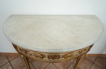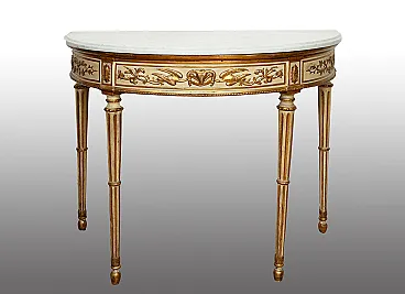 Console Demi Lune Louis XVI in lacquered and golden wood, Naples, 19th