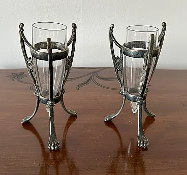 Pair of small lamps in Silverpilated Art Nouveau, 20s