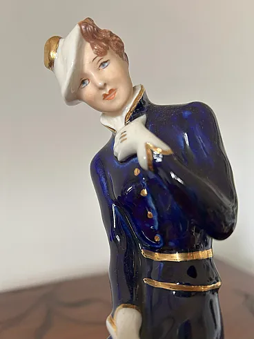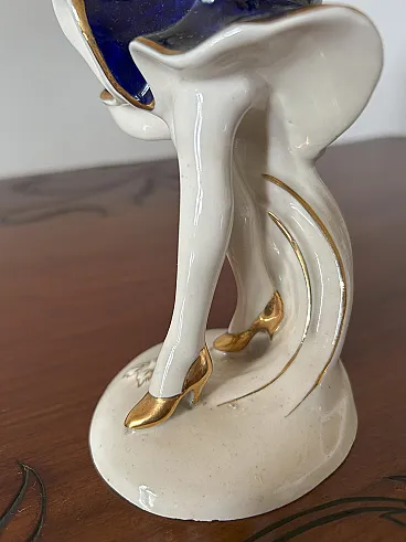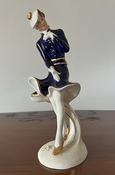 The Art Statuina Decò depicts a female figure in porcelain enamelled in blue, pink and threaded in gold.