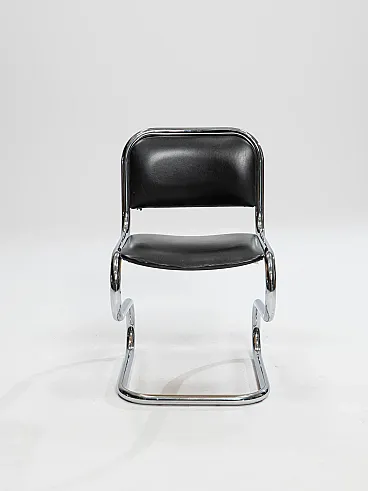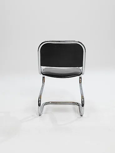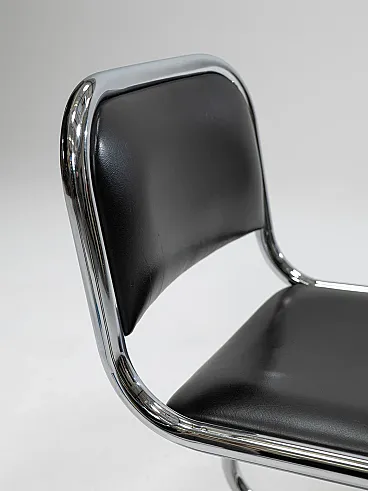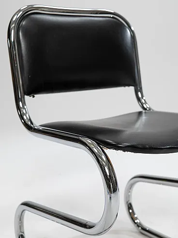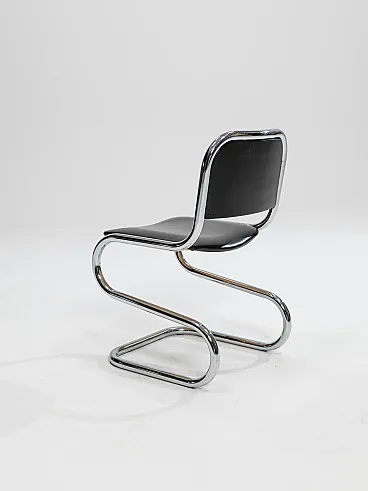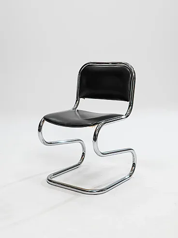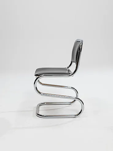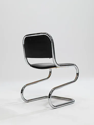 The cantilevered chairs with a metal tube structure were one of the most proud companies of the Bauhaus, as they embodied their spirit of innovation, structural gymnastics and efficient use of materials. The designer of this chair, undoubtedly inspired by the great minds of the Bauhaus, gave up this last aspect when he thought it. While all the frames of the previous cantilever chairs are looking for the shortest route from the floor to the seat and back, this in particular runs in the middle of the seat, goes towards the front, turns again and only then reaches the seat. This unusual path, together with the greater diameter of the tube and the softer cushions, is due to half a century of changes in the design and production philosophy. If we were to ask the designer for an explanation, he would probably shrug and say: "I wanted to do it and nobody told me not to do it".