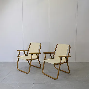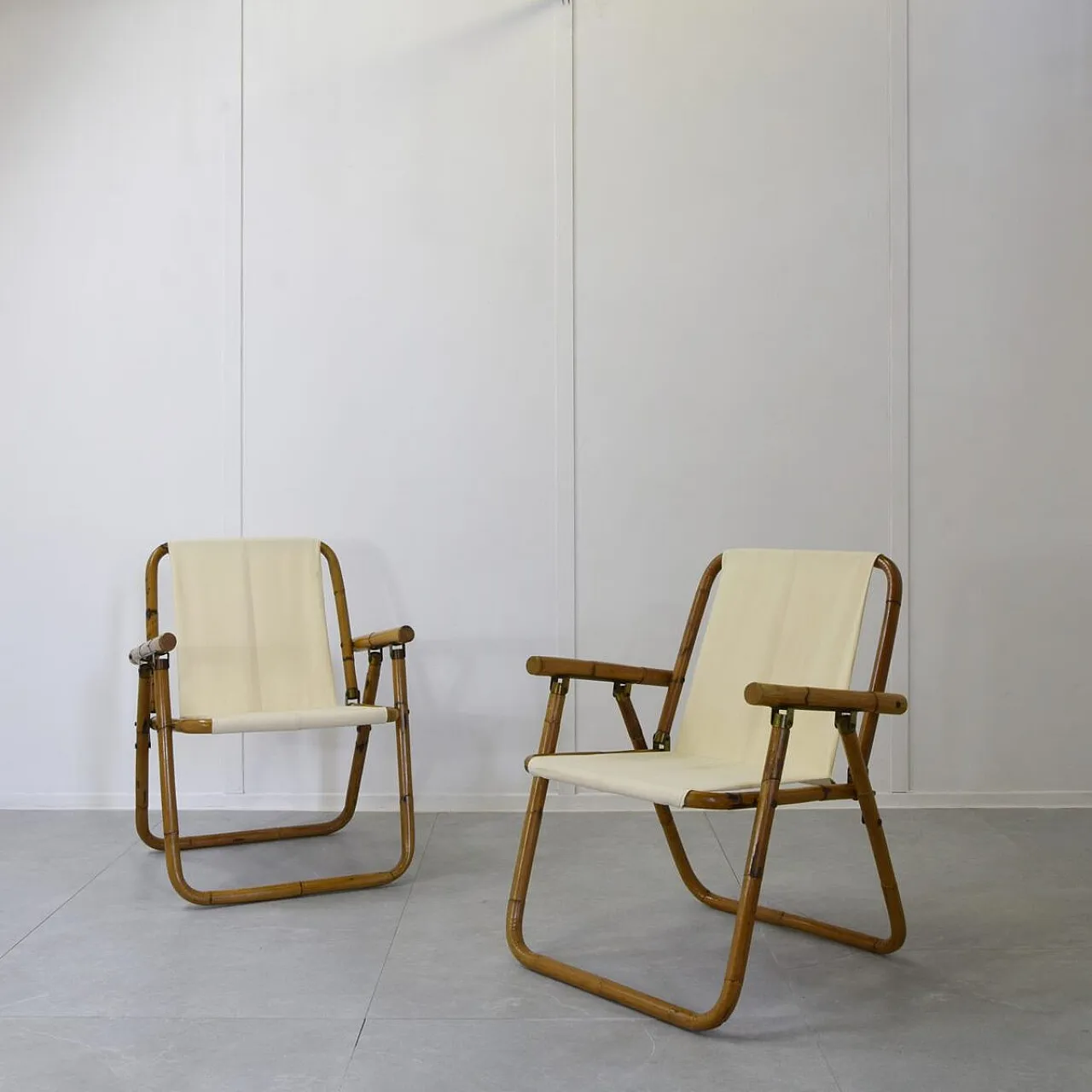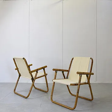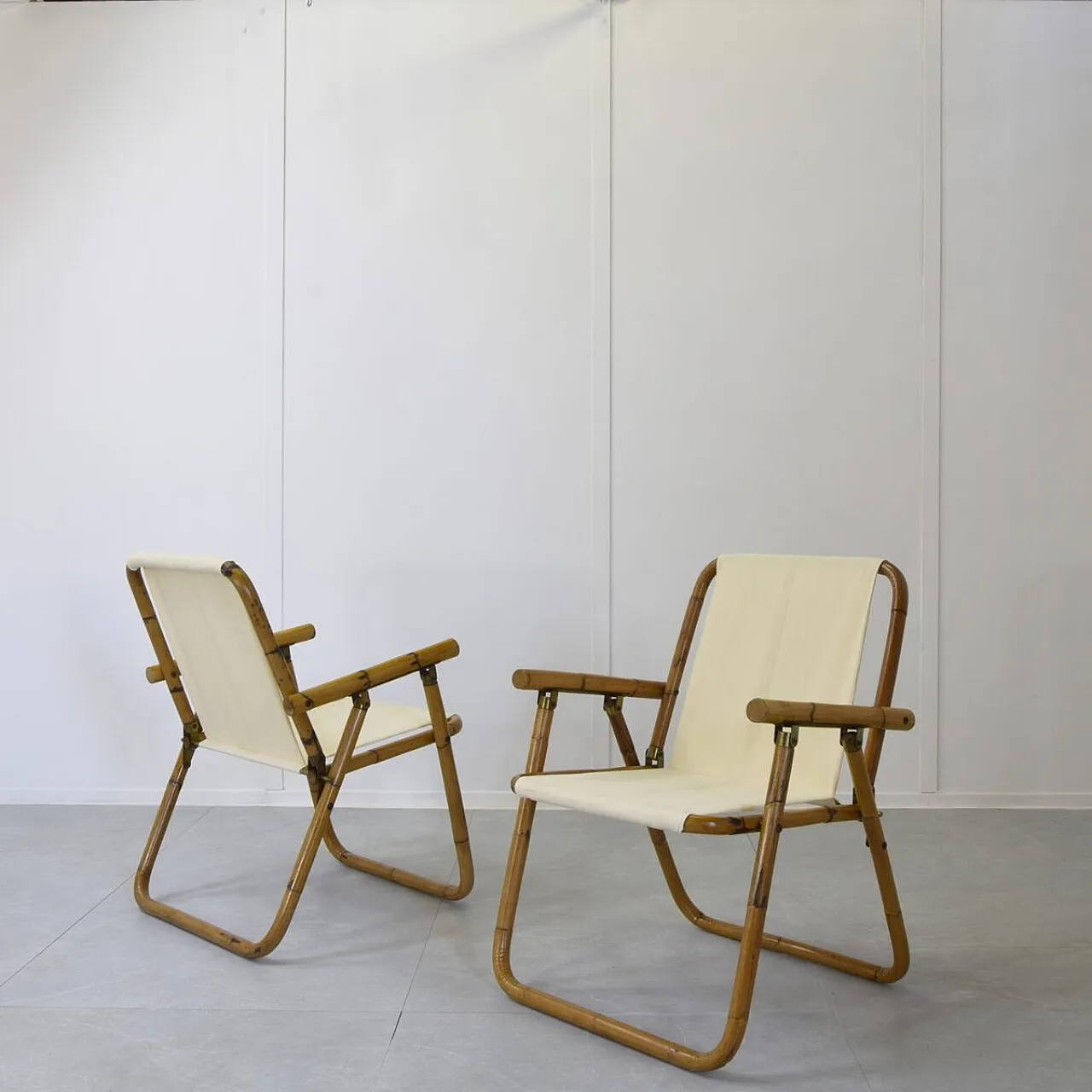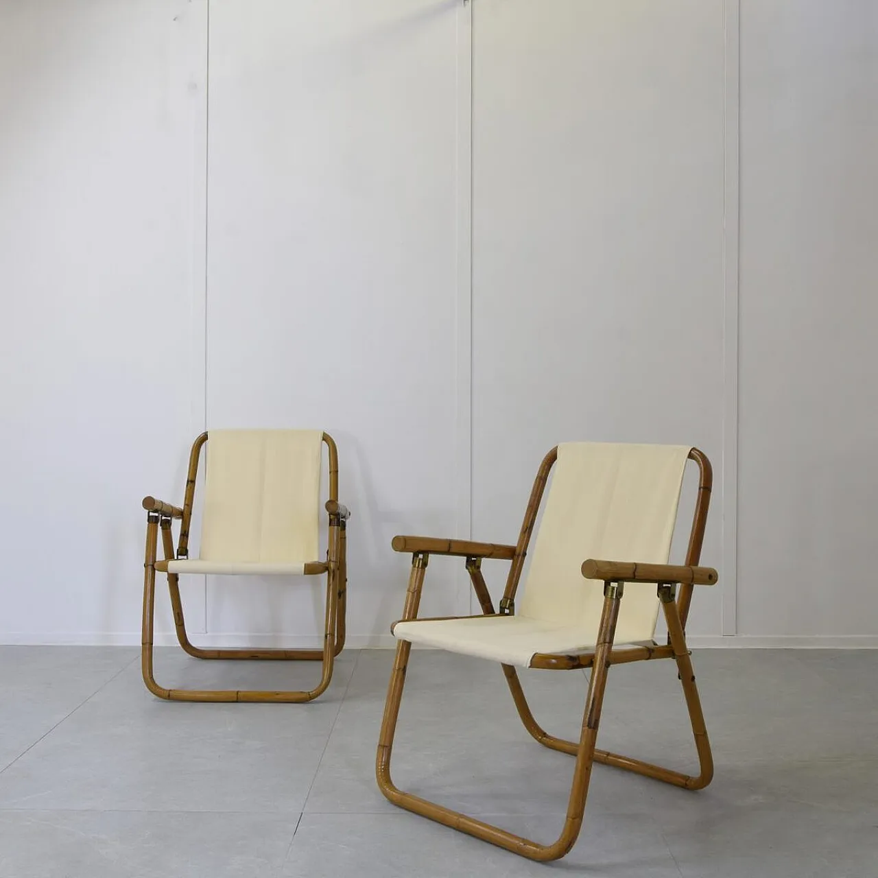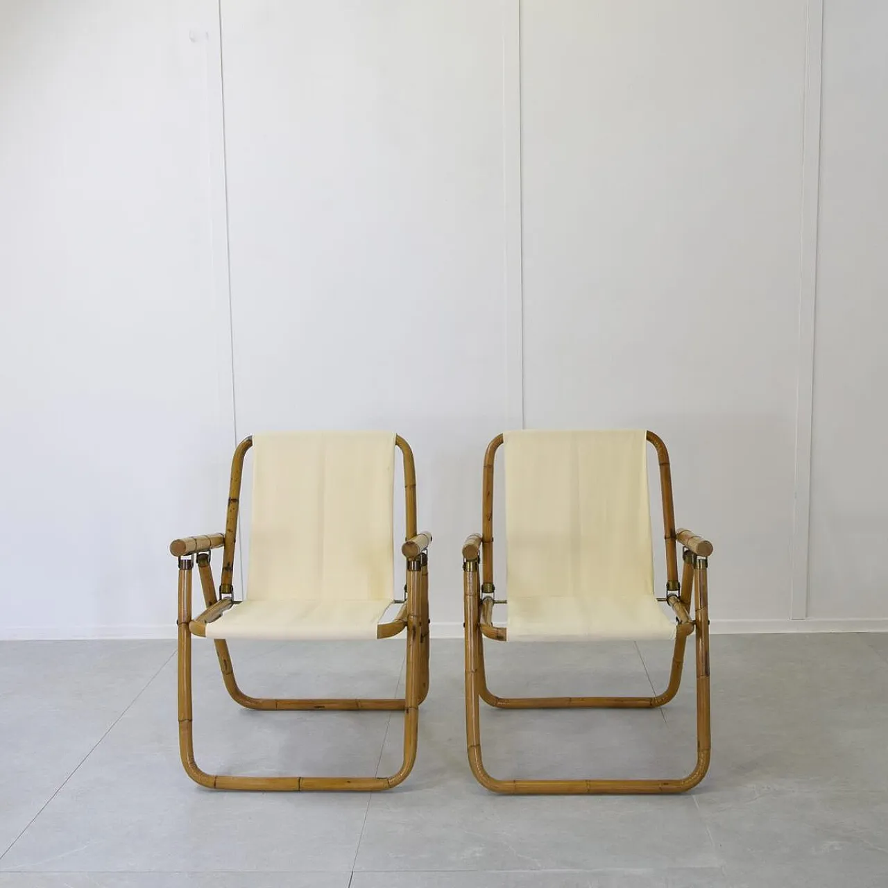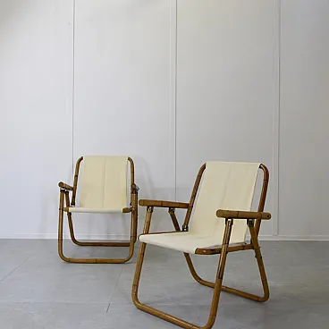 Italian folding chairs in bamboo embellished with hinges and brass rods attributed to southern nurseries, 1960s, set of 2.
