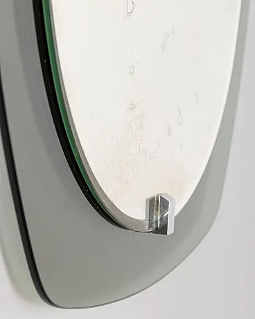 Wall mirror with blue smoked glass frame and chromed metal supports, Veca design, 1970s.