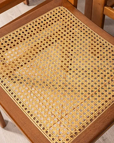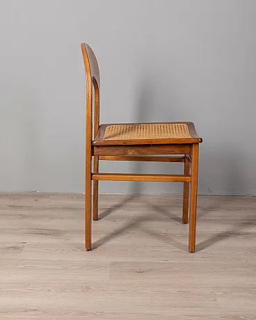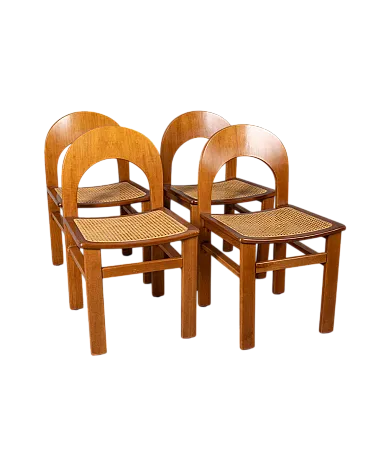 Set of four chairs in curved wood and Vienna straw seat, "Arcadia" model designed by Adalberto Caraceni for Tagliabue di Cascina Armata, 1970s.