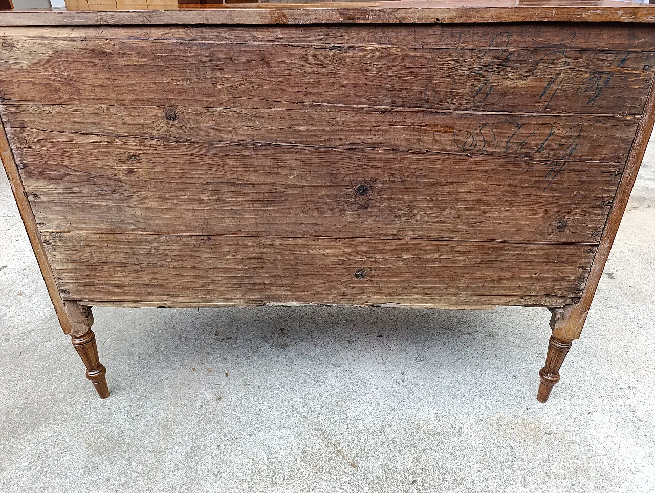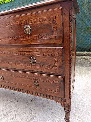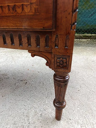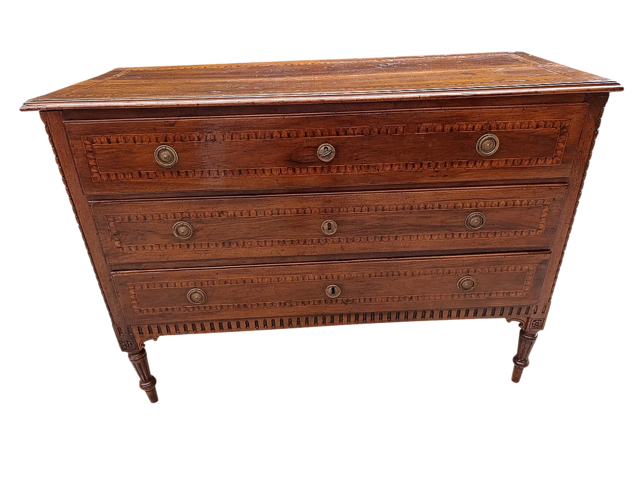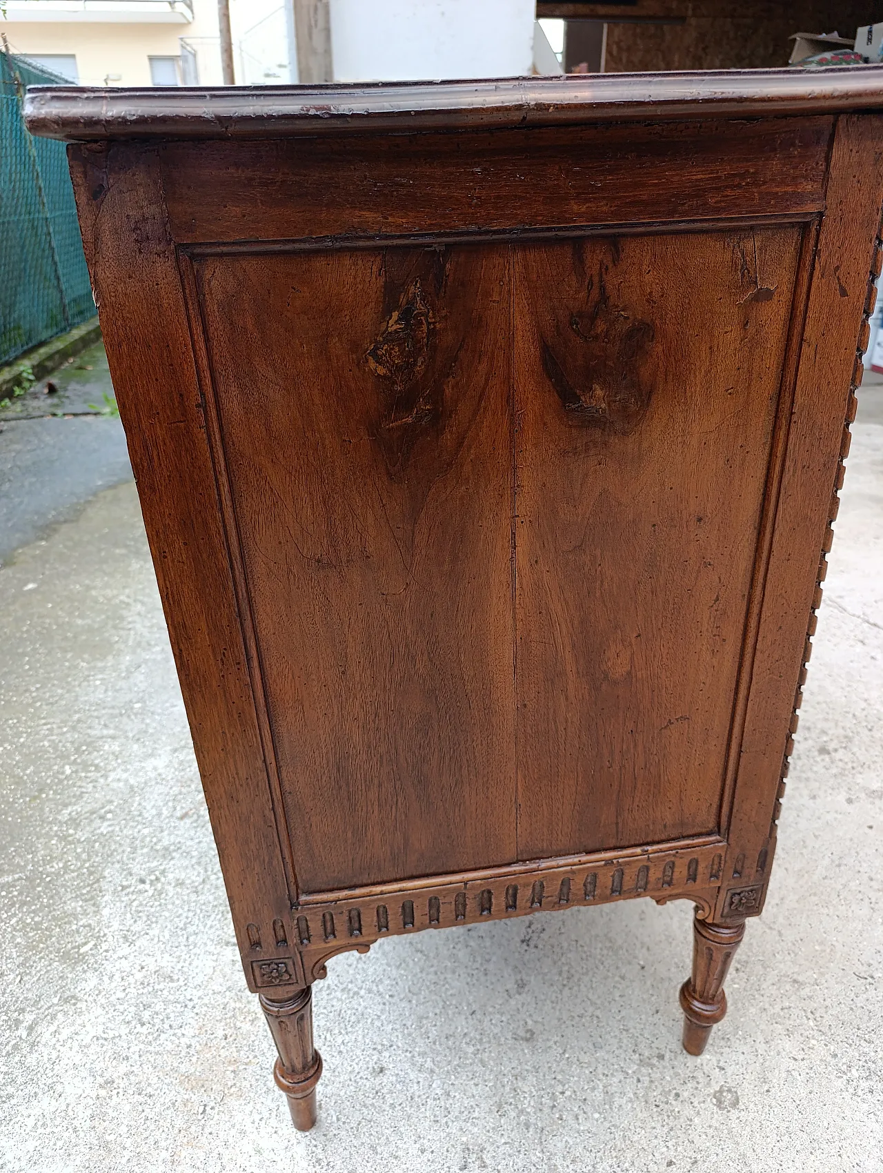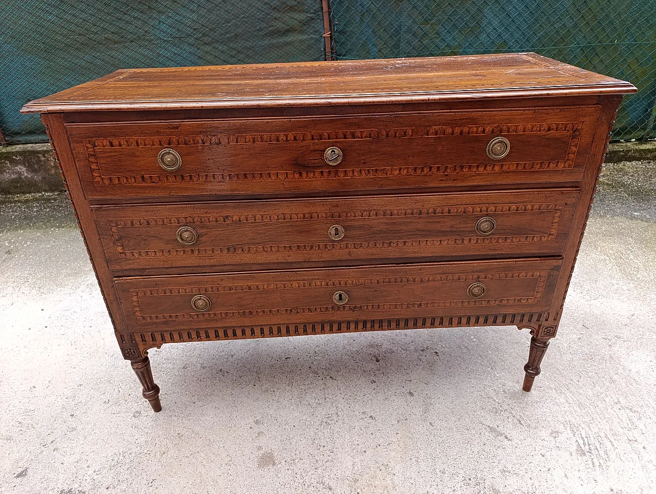 Louis XVI chest of drawers in walnut with carving and inlay Veronese area. Originsi Restoration interventions due to the time We are at your disposal for photos or questions