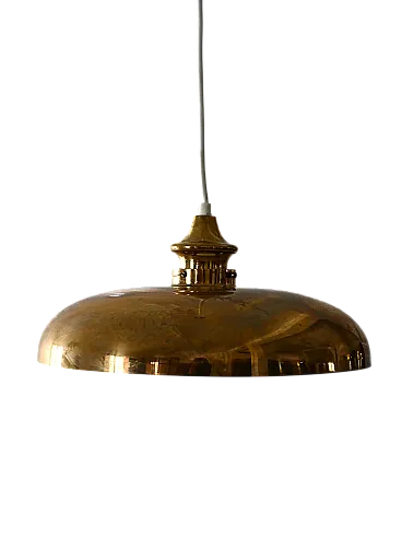 Vintage brass suspension lamp designed by Hans-Agne Jakobsson for Markaryd. Essential and warm Scandinavian design. Ottone suspension lamp designed by Hans-Agne Jakobsson for Markaryd, Sweden, 1960s/70s production. The metal diffuser with a soft and flattened shape reflects the light in an enveloping way. The sober and refined design fully expresses the Scandinavian approach to matter and light. Good condition. It may present signs of time. Pleasure pay attention to the photographs.