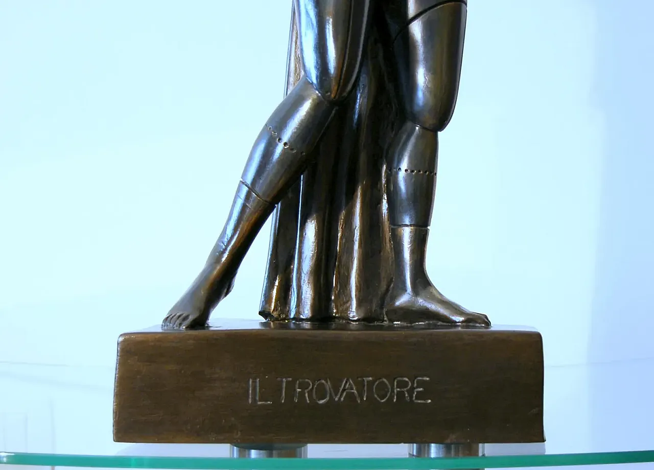 Bronze sculpture of the famous figure that the artist calls "the Trovatore". De Chirico made this subject several times during his life, constituting an iconic series of works - Manifesto of his metaphysical poetics. The 1917 Troubadour is the undisputed protagonist of the scene, motionless in its shiny armor, standing on a platform and with an intricate composition of squares and geometric elements.