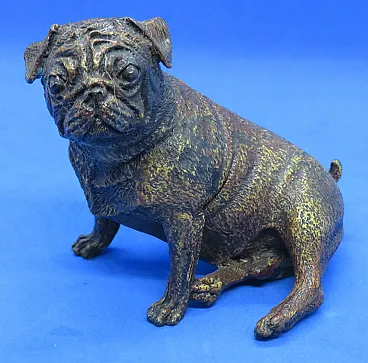 Pug figurine in cold-painted bronze by Franz Bergman, 19th century