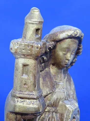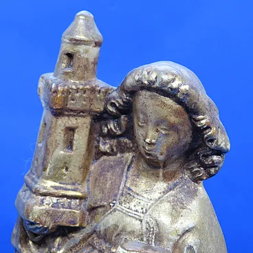 St. Barbara, gilded ceramic religious statuette, 19th century