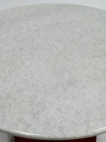 Before starting the colorful and provocative Memphis style, Ettore Sottsass was already a well -known and prolific designer. The "red lotus" is more sober than its subsequent works and brings with it an air of tranquility. A rounded round base, a column leg neither too thick nor too thin and a generous marble support surface: that's all, and look at it! The piece in our possession presents strong similarities with the red lot but, since it is the high -sounding name of Sottsass and not being able to be sure whether it is an original or not, we are prudent.