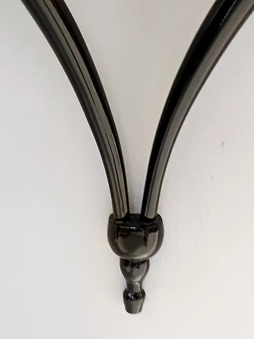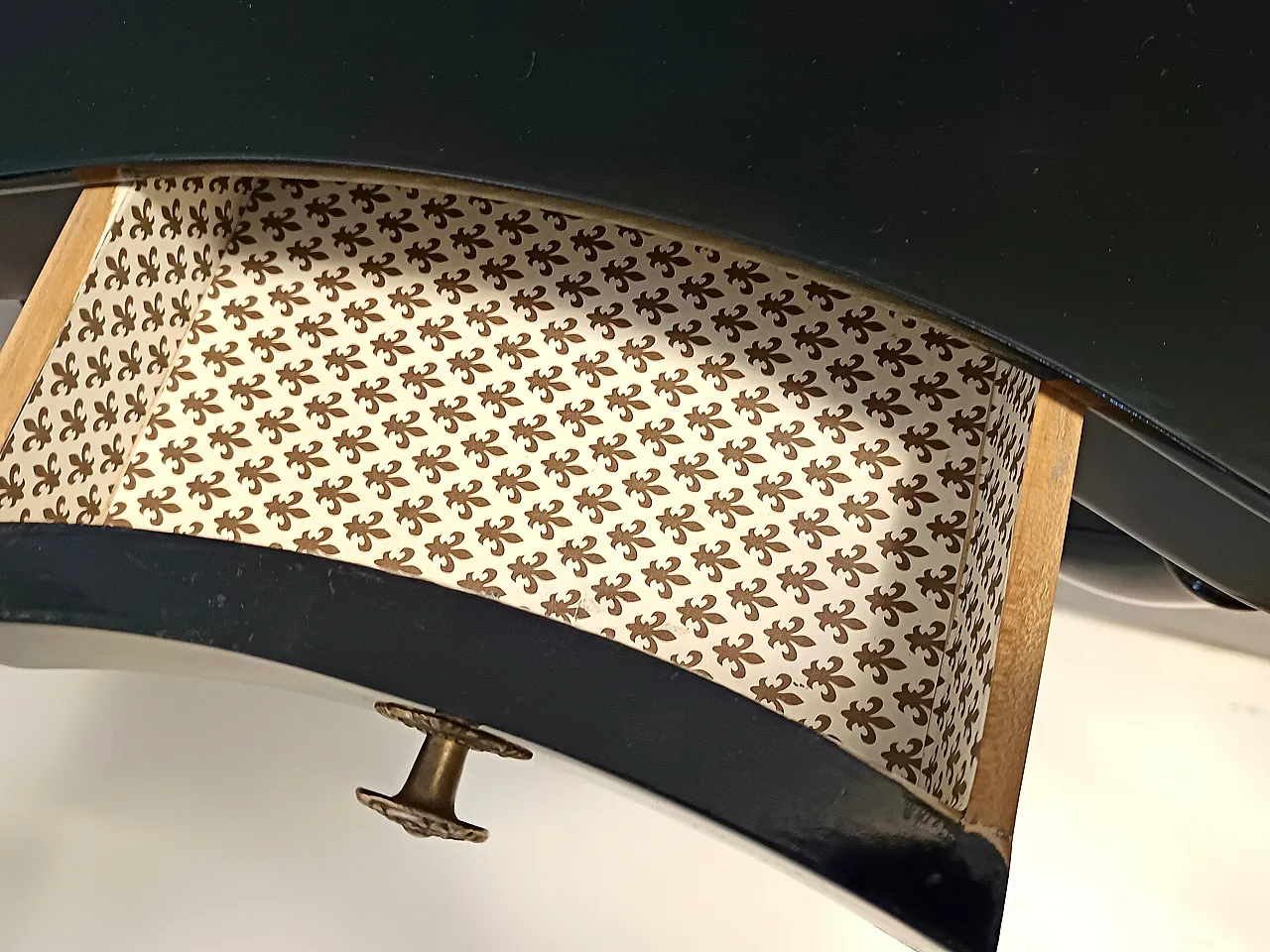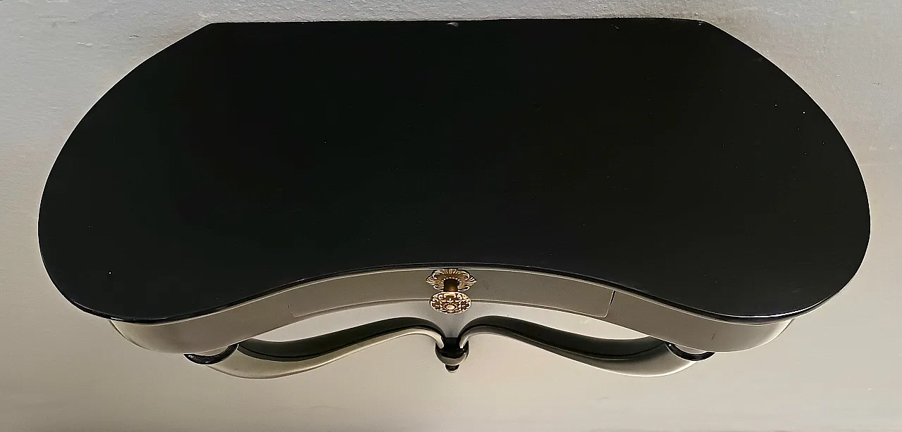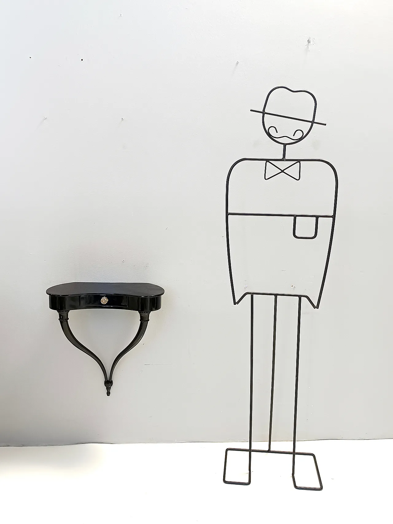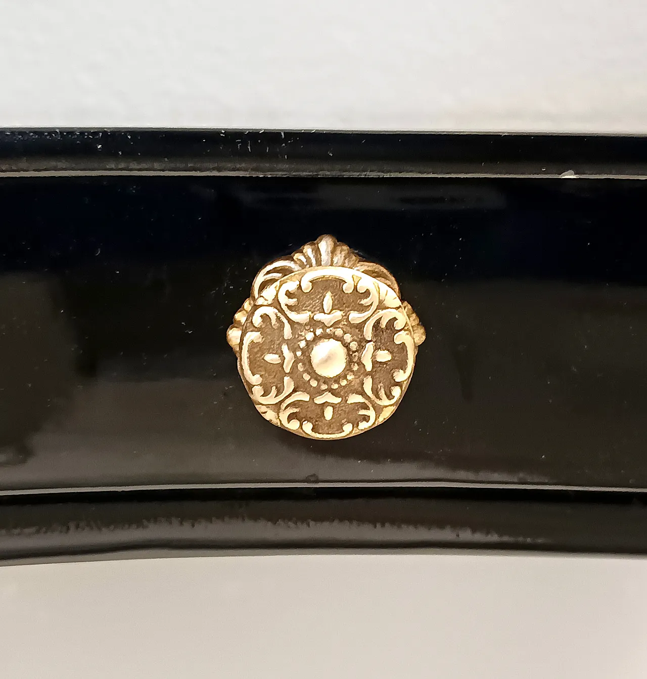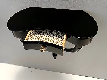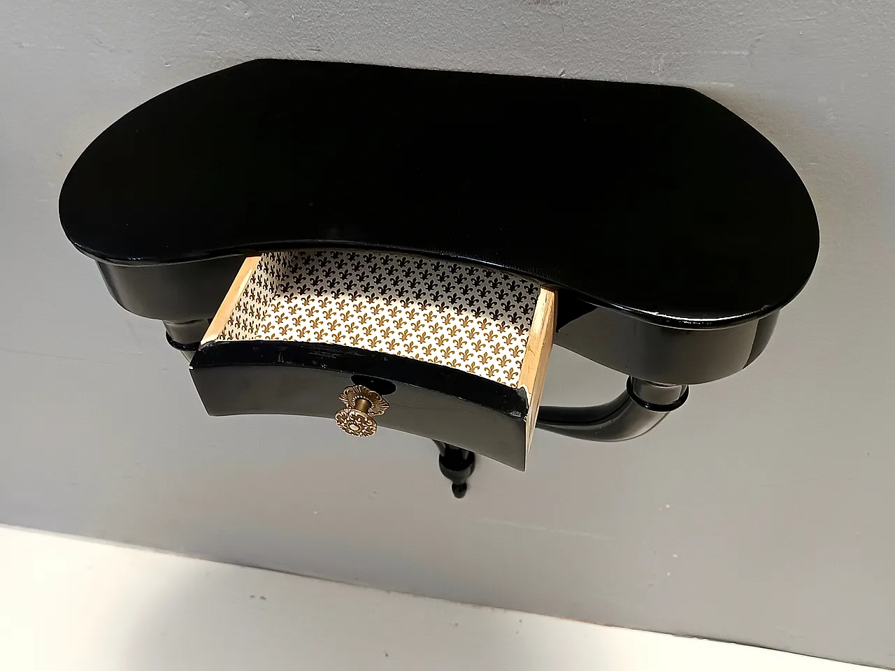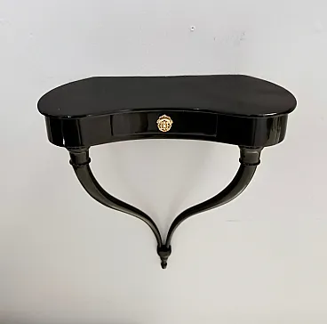 Made in Italy, 1950s. These wall-mounted console tables / nightstands feature a black beech frame with brass handles. Ulrich used this sinuous design also for wall lights and sconces. They might show slight traces of use since they're vintage, but they've been recently relacquered and can be considered as in excellent original condition and ready to become a piece in a home. Measures: Width 49.5 cm Depth 23 cm Height 55 cm. Order it now! We sell the best quality pieces and we offer an amazing service: if it's not during night time, we answer within 2 hours and we absolutely love to follow every step of the purchase and even after. As matter of fact we really appreciate our customers’ feedback and when we receive pictures of our pieces in their new homes. We assist you during the process and answer all your questions. In addition to this, we always review the pieces before shipping, so that you receive the goods at its very best. We provide the best possible quotes and professionally and carefully pack the items. Insurance is included. And if there is any issue, it is our mission to make so you don't have to worry: we will always be there for you to assist in any way possible.