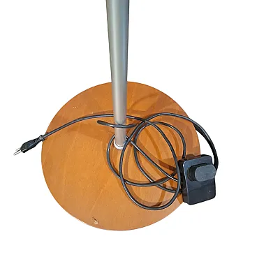 Artemide's "Orion" model lamp by Artemide, designed by Rodolfo Dordoni, artistic director of the Artemide Vetri Collection for several years. Dordoni also collaborated with iconic design brands such as Minotti, Fontana Arte e Cappellini. This lamp, symbol of the style of the 90s, has a printed glass lampshade and a painted aluminum stem, with a decorated wooden base. With its timeless design and the Artemide quality brand, the "Orion" flat floor is a collector's piece for design lovers.