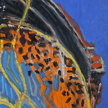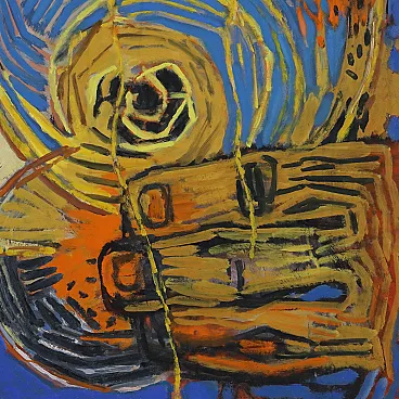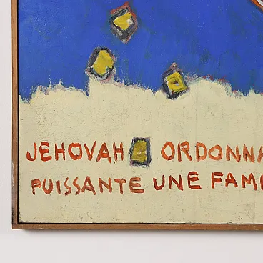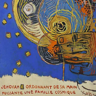Oil on canvas. Signed and dated lower right. In ORAZI\'s abstract pictorial phase, his strong inclination to create circular shapes, often knotted or concentric, is often expressed. This tendency becomes central in the pictorial phase of the years 1970-1977, called Ligne Circulaire, in which he abandons creations in relief and the reference to the shapes and impressive events of nature, to instead depict the harmonious dimension of the universe, the birth and movement of the planets, the vastness of the firmament. The colors soften, are rich and at the same time tender. In some paintings ORAZI also depicts fascinating representations of Mother Earth embracing her creatures (insects, birds, flowers) or of the Moon. Or as in this work, he expresses a direct reference in the title to divine creation, depicting \"God who orders the cosmic family with his powerful hand\". The work comes from the artist\'s family collection. It is presented in a frame.