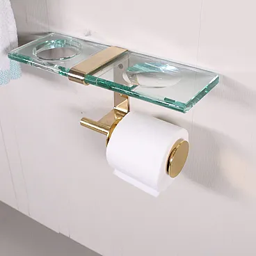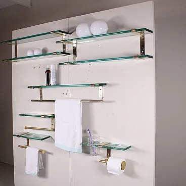 6 Glass and Brass Bathroom Set in the style of Fontana Arte, 70s
