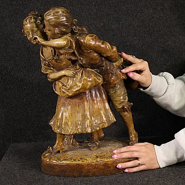 Austrian sculpture of the mid -twentieth century. Work of romantic taste depicting gallant scene of beautiful and quality. Object signed on the basis (see photo) signature during the study phase. It brings some standard numbers to the base and the writing Fabriqué EN Autriche. Work referable to the Goldscheider production of Vienna (1885 - first half of the 20th century), lacking additional documentation. In beautiful patina, sculpture ended up by the center that does not have breakages or restoration interventions. In good conservative state.