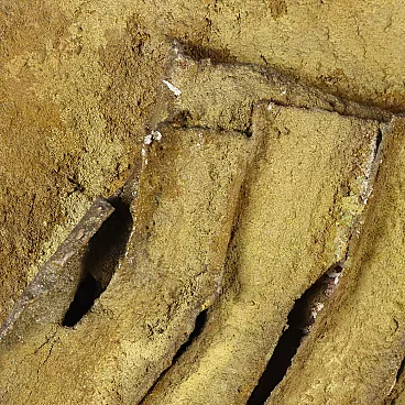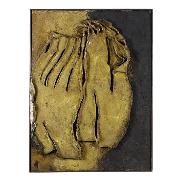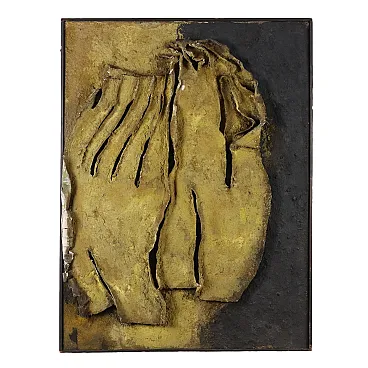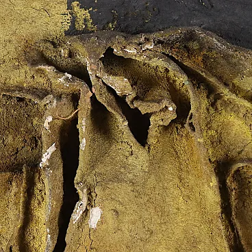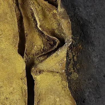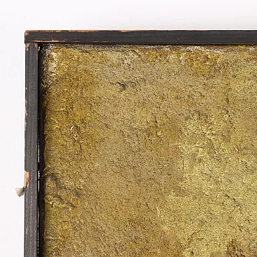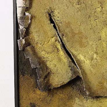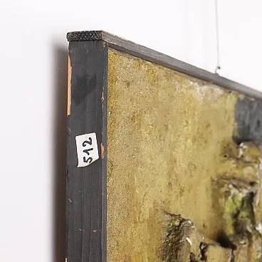 Mixed media on canvas, with material applications. From 1958 to 1968 ORAZI, who had already moved from the figurative to the abstract phase, devoted himself to creating compositions in relief: he collected and used materials and fibres of different types, especially natural materials and fibres such as tiny grains of sand, seeds, plant filaments and fragments of bark, with which he created relief shapes that emerged from the surface of the canvas. The basis of this artistic experience, called Peinture en Relief, was the exploration of nature, its components and its phenomena (flowers, plants, sands, rocks, volcanic lava, coasts and seabeds, eruptions, storms, petrified meteorites). The works of this period were initially characterised by a still rather low relief; but subsequently the relief became more and more pronounced, often coming out of the perimeter of the support, to the point of appearing more like statues than paintings. The work is presented in a frame. From a collection of the artist\'s family.