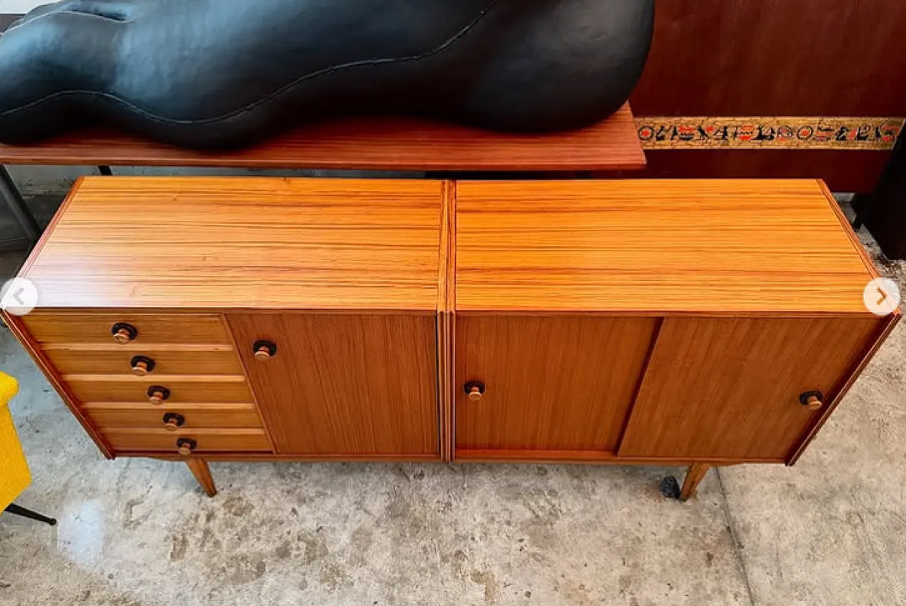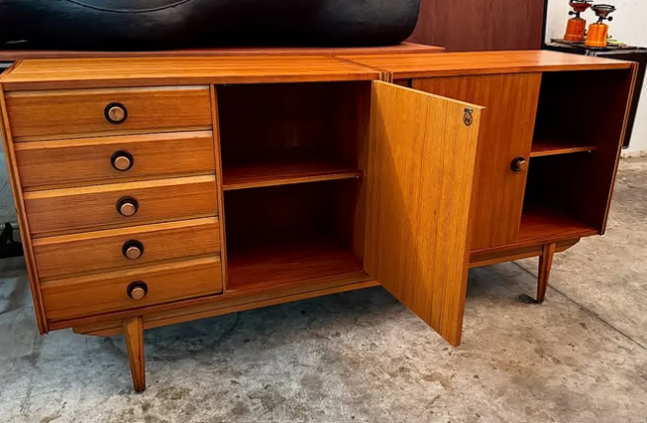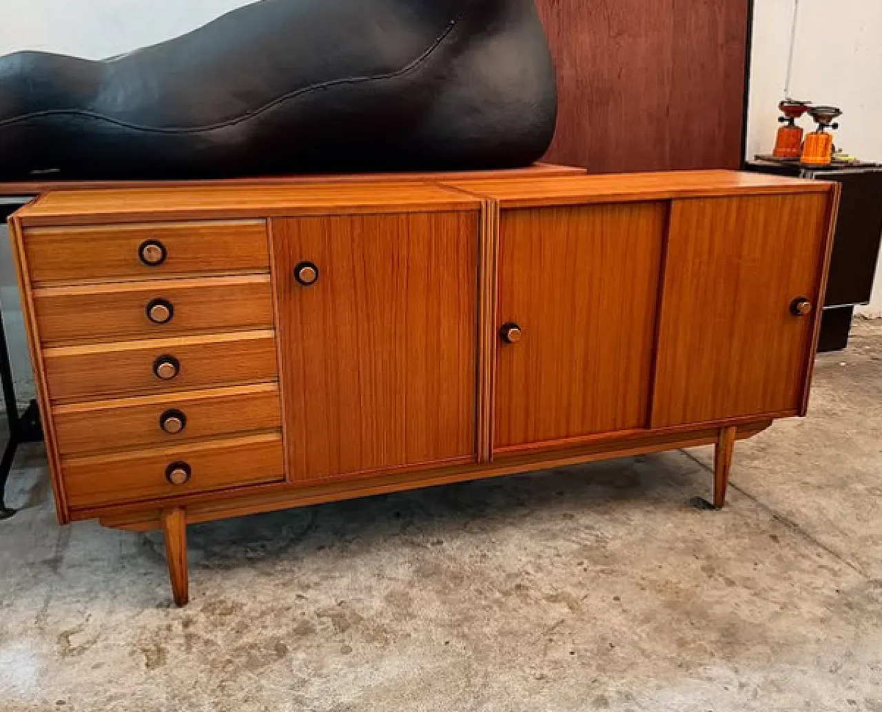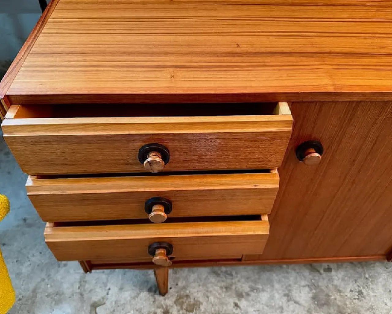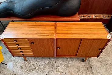 Scandinavian style sideboard with original AV -contemporary furnishings, 1960s. Factly structure in teak wood, chest of drawers and two sliding doors, excellent condition.