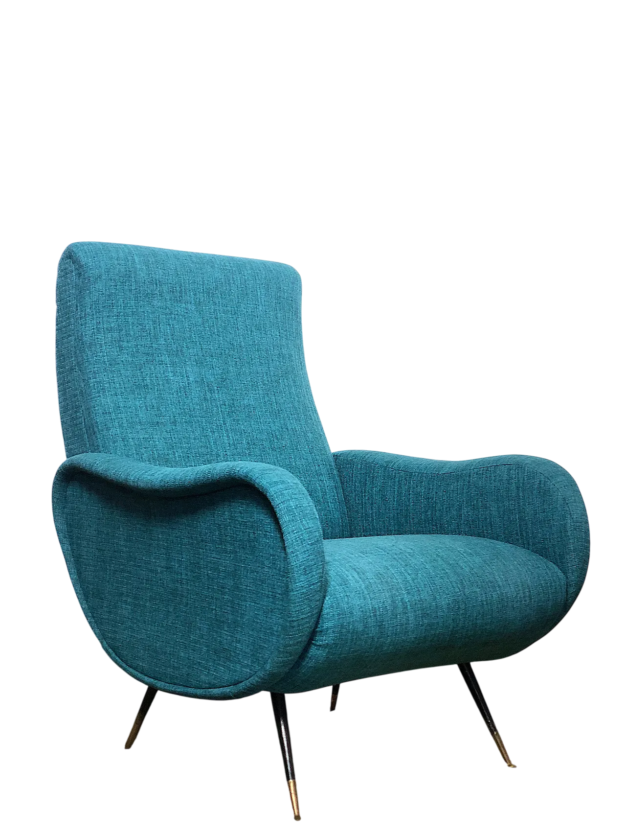 "Lady" 50s armchair Design attributed to Marco Zanuso masterpiece of Made in Italy, Lady was awarded with the gold medal at the IX Triennale di Milano in 1951. The armchair is of Italian manufacture, completely restored with new coating and interiors, Sky Blue Cotton fabric, unmistakable style of the designer of the designer Marco Zanuso, feet in the brass with the typical design with the typical design. of the 50s. Perfect conditions measures height height 90 cm/width cm 67 cm/depth 90 cm/height session 40 cm/seat 50 cm 50 x 50 cm