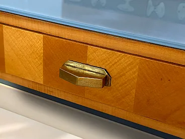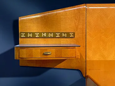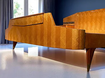 The entire ensemble radiates warmth, elegance, and luminosity, thanks to its rich yellow maple veneer arranged in a striking herringbone pattern that speaks volumes of refined Italian craftsmanship.