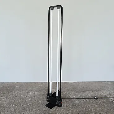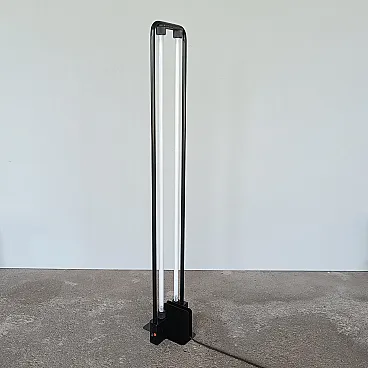 Duo floor lamp by Boccato, Gigante and Zambusi for Zerbetto, 1970s . The lamp features tubular metal frame lacquered in black, a black metal base. Dimensions complete with base: 30 × 30 × 169 cm. Neon tubes not included. Very good condition.