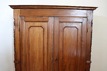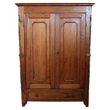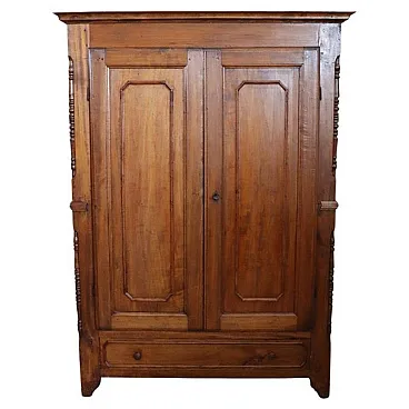 We present this fantastic ancient Italian wardrobe of the mid -nineteenth century, dating back to the Luigi Filippo period. A wardrobe with an ancient timeless charm! Made of solid poplar wood in a splendid light shade, easy to combine with any furniture color. Characterized by a very linear structure, without excessive ornaments, a lathed decoration on the front creates a frame on the sides and softens its linearity. The doors and sides are characterized by geometric panels. Equipped with two doors and a practical drawer in the lower part for further containment solutions. Internally it presents a practical and curious division: one side with a hanger stick, the other with two shelves, while in the upper part there is a long shelf. Note that the interior can be modified according to your needs by adding shelves, the request must be made before the order. The wardrobe will be sent disassembled, the assembly is not included in the delivery, but we can provide a support video. Please note that it is a wardrobe whose assembly is very simple because it is divided in half into two single bodies. This wardrobe tells a part of the history of Italian furniture, being a type of wardrobe widespread in the nineteenth century among the families of northern Italy. Although in our opinion it is perfect for furnishing a country or mountain house, its ancient charm can also give warmth to a modern urban environment. In terms of conservation, the wardrobe presents itself in good general conditions with minimal signs of usury compatible with its age.