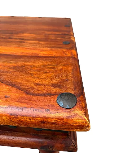 This elegant ethnic table is a unique piece from northern India, made of indian teak solid, locally known as wood Tik, appreciated for its durability and natural beauty.