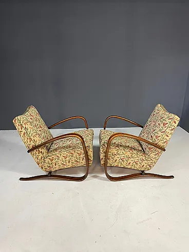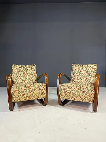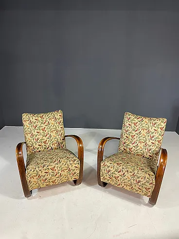 A pair of iconic H269 armchairs designed by Jindřich Halabala in the 1930s. These chairs represent the peak of Czechoslovak functionalism and Art Deco-influenced design.
