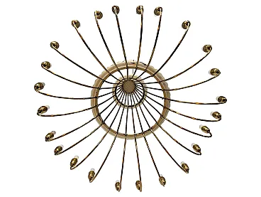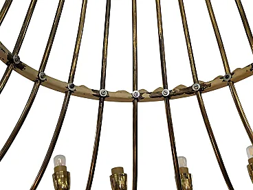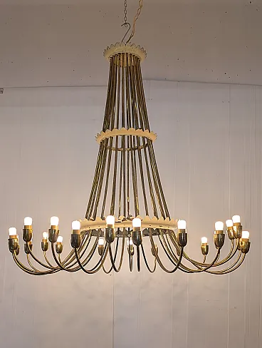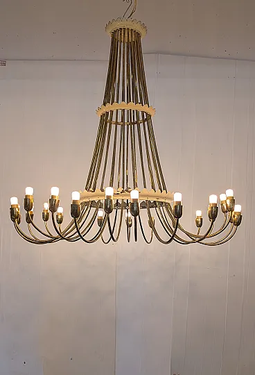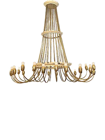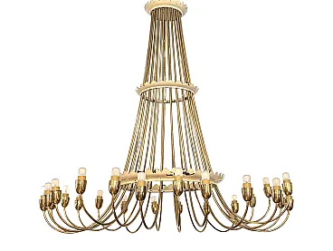 This sumptuous golden brass chandelier stands out for its elegant waterfall design, with a slender and harmonious structure that opens down in a spectacular light crown. Equipped with 25 lamp holders distributed on a single level, the chandelier combines majesty and refinement, ideal for classic environments or contemporary spaces that seek a touch of vintage luxury. The arched lines in lucid brass enhance the hot light of the bulbs, creating a welcoming and scenic atmosphere. Perfect for large rooms, monumental entrances or representative environments.