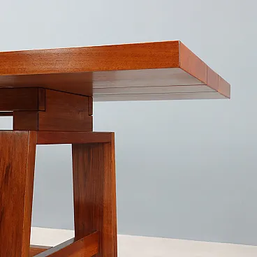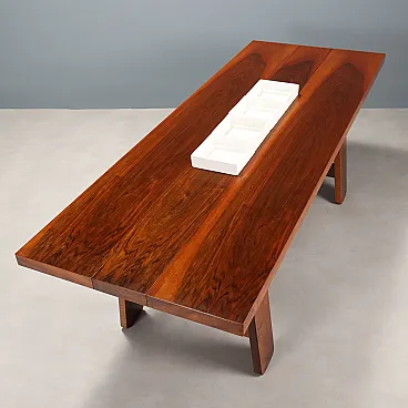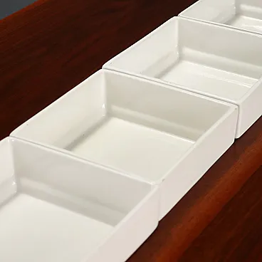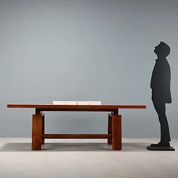 Solid wood table veneered in walnut with a rectangular top complete with ceramic accessories bearing the production brand. Restored in our laboratories. Restored.