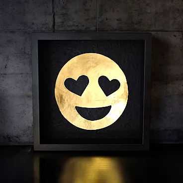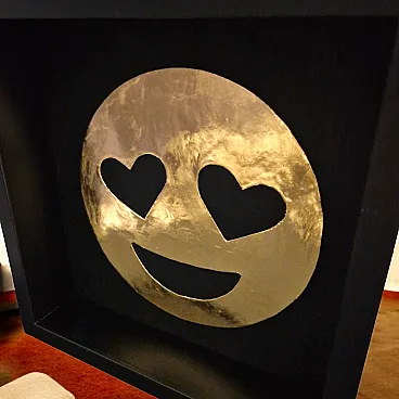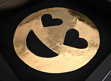 Smiley in Love emoticon 23kt gold plated in frame PopArt