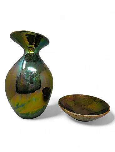 Made by the historic Bottega Gatti di Faenza, these refined ceramic objects are distinguished by the elegance of the shapes and the extraordinary iridescent finish, typical of Faenza artistic production.