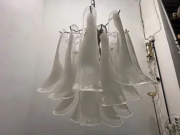 Item Name - Vintage Murano Glass Petal Chandelier, Italy, 1970s STYLE - MID -Century, Italian Modern Design period - 1970 to 1979 Production period - 1970 to 1979 Country of Manufacture - Italy Maker - Made Murano Glass ATTRUSION MARK-THIS PIECE IS DESIGned in The Style of the Selected Designer and/or Manufacturer Additional item Information - Vintage Murano Glass Petal Chandelier, Italy, 1970s This Exquisite Murano Glass Chandelier from the 1970s features in Beautiful Arrangement of White Glass Petals, Each Meticulously Handcrafted use Traditional Murano Glassmaking Techniques. The Organic, Cascading Design Creates a Soft, Diffused Light, Making it a Striking Centerpiece for Any Interior. Details: • Design period: 1970s • Place of Origin: Italy • Style: Mid-Century Modern • Materials: Murano Glass, Metal (Gold Repainteted Frame) • Color: White, Gold • Condition: Excellent Vintage Condition; The Gold Metal Frame Has Been Fully Restored and Repainted. The Chandelier Has Been Newly rewired and is ready for immediate use. • Height (Including Chain and Canopy): 103 cm • Height (Without Chain): 50 cm • diameter: 40 cm • Number of Lights: 4 • Socket Type: E27 (Suitable for Standard Screw Bulbs, LED Compatible) • Wiring: Newly Installed, Compliant with Modern Standards. This Vintage Piece is a timeless Example of Italian craftsmanship and is perfect for living spaces, dining room, or styling entryways. Minor Signs of Wear Consistent With Age and Use. Materials - Murano Glass Color - Gold, White Weight Range = Light - Under 40kg Detaled Condition - Very good - This Vintage/Antique item has no Defects, but it May Show Slight Traces of Use. Restoration and Damage Details - Light Wear Consistent With Age and Use, Rewired and/Or New Electrical Components, Partially Restored Is this Piece in Working Condition? Yes, I have Had to Professional Electrician Re-Wire The Piece. Height = 103 cm Width = 40 cm Depth = 40 cm