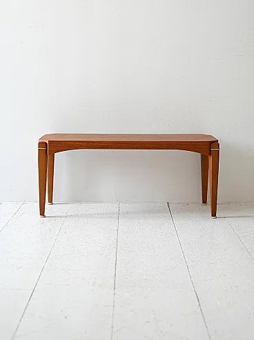 Panca in teak anni ’60 con gambe rastremate e anelli in metallo a vista dal gusto minimalista.