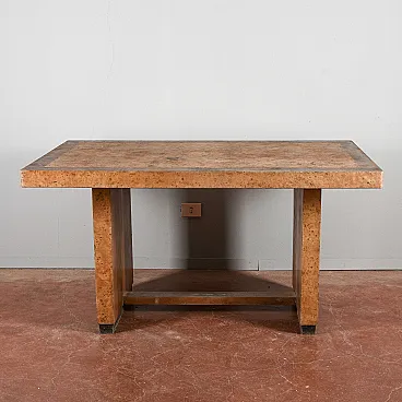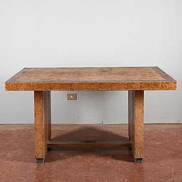 This Table Art Decò, dating back to the 1930s or 1940s, is an example of a functional design of the time. Its solid structure and clean and geometric lines, typical of the art deco style, make it a versatile furniture element, suitable for a dining room, a study or an environment that wants to recall the charm of vintage design. The table presents a walnut radical finish, which enhances its natural veins and the beauty of the wood. Although they are present, the overall structure is good, and a small restoration can bring it back to its original splendor, preserving its authenticity. It is an ideal piece for modernist lovers. Ideal for those looking for a piece of furniture with a story, capable of adding a touch of elegance and originality to the environment, this art Decò table is an opportunity to have a historical design element, combining aesthetic and practicality in a single piece.
