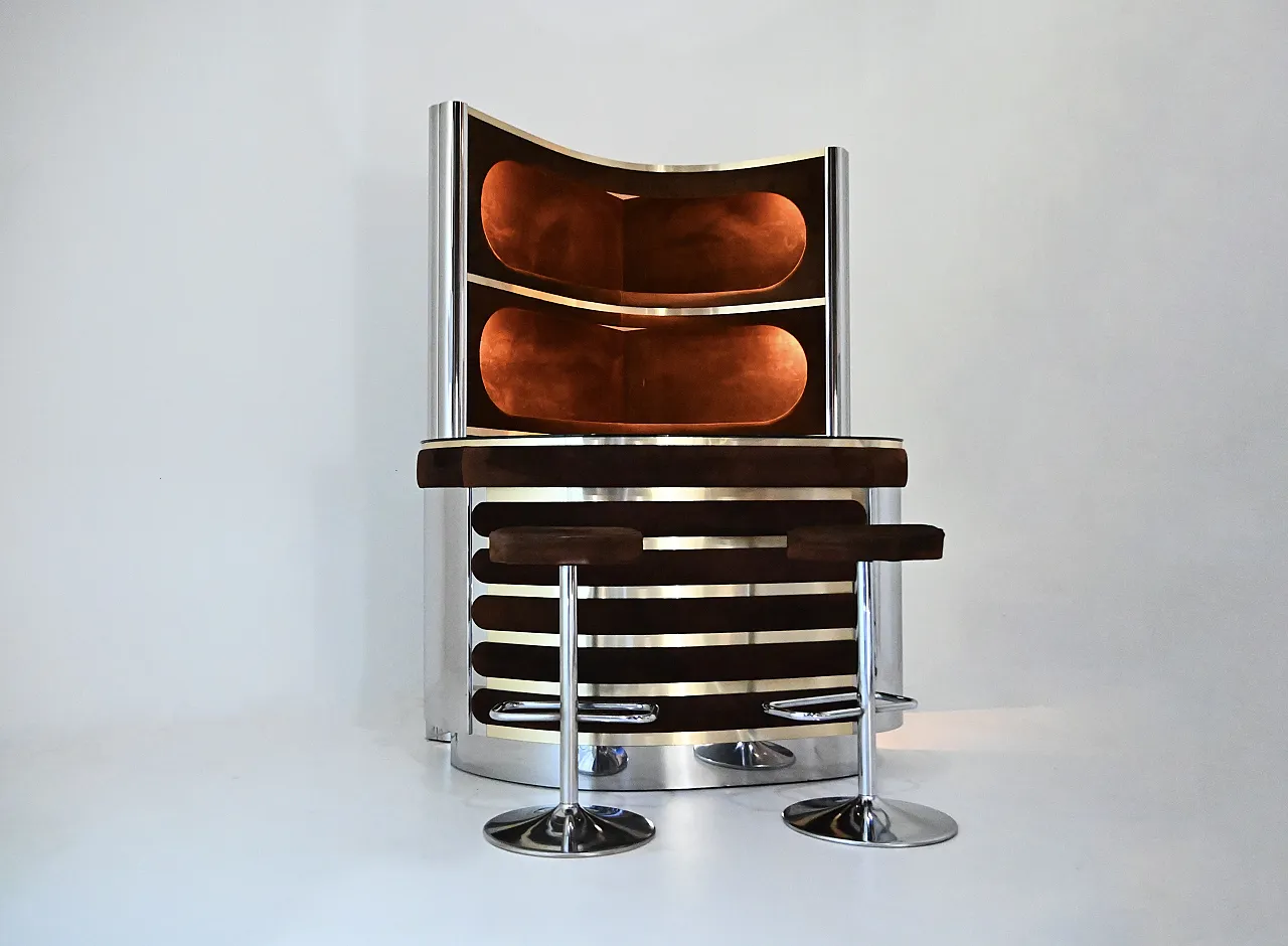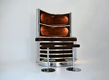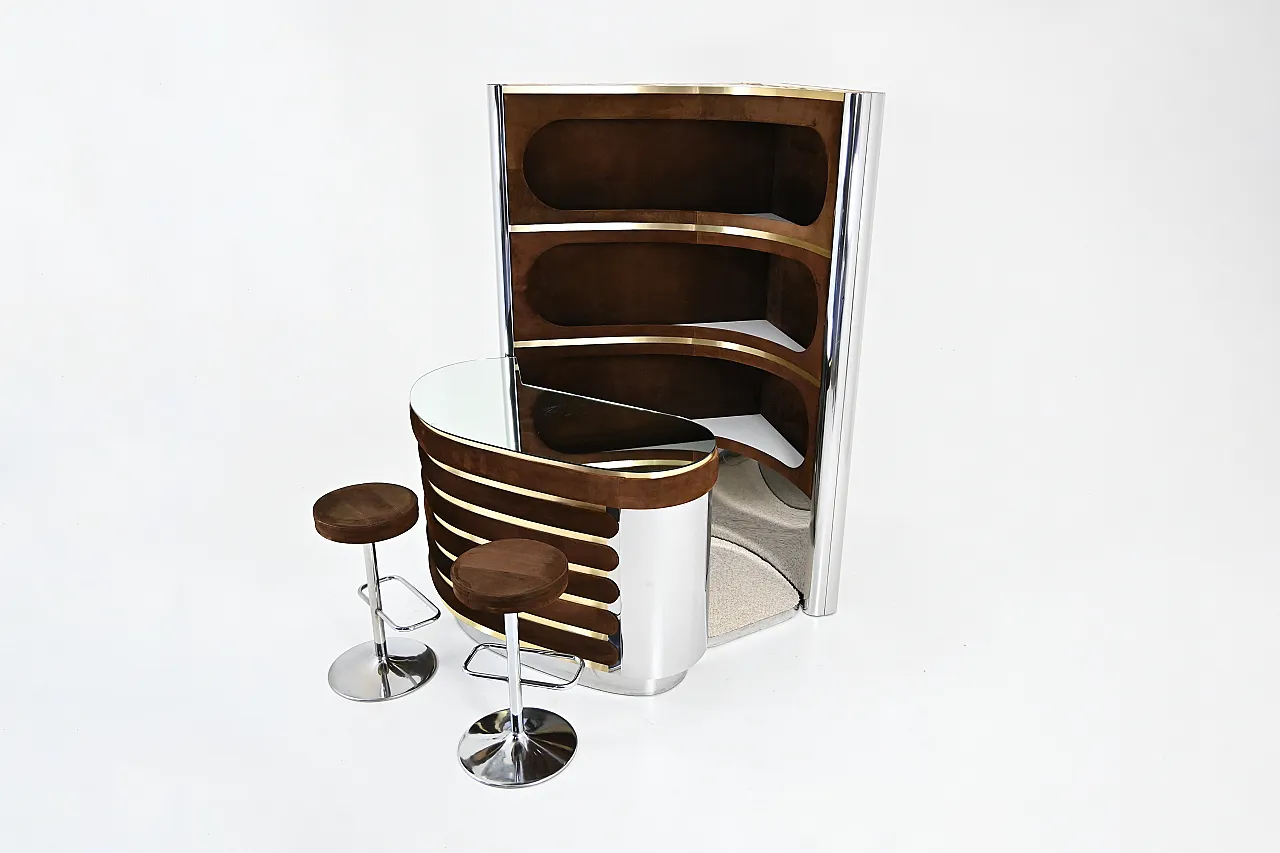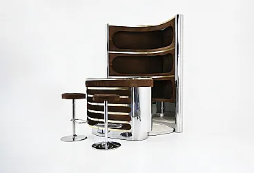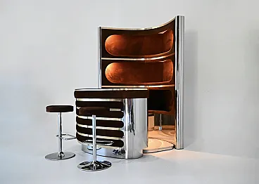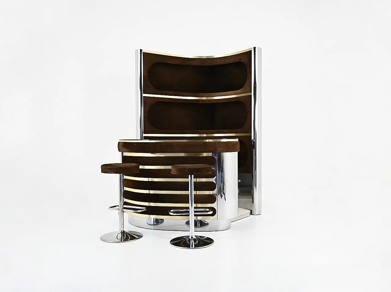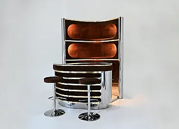 Bar set with 2 stools in the style of Willy Rizzo, 1970s