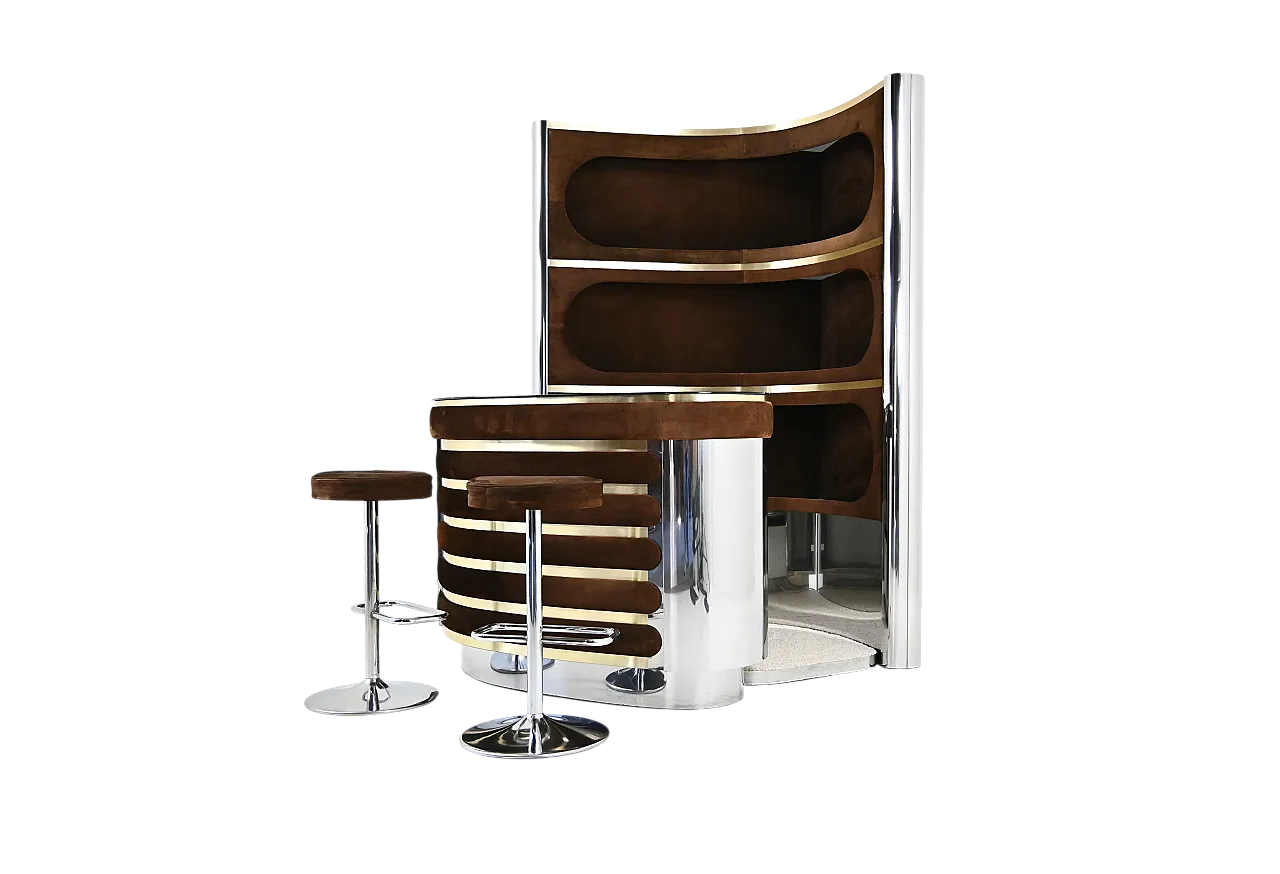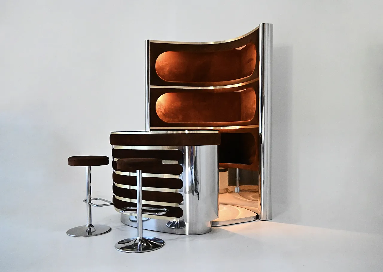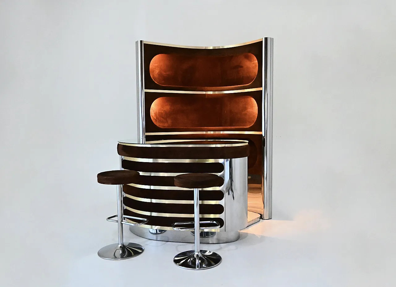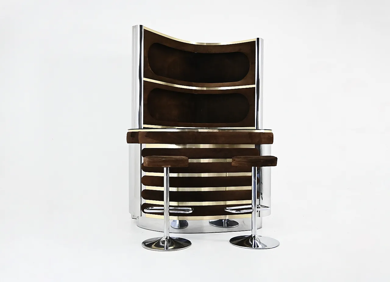 Bar set with 2 stools in the style of Willy Rizzo, 1970s