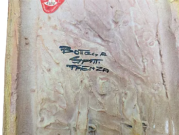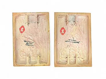 Pair of decorative ceramic ceramic plates, created by the historic Bottega Gatti di Faenza, known for its excellence in artistic ceramics. The works depict suggestive naturalistic scenes in relief.