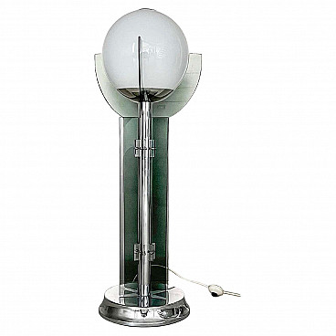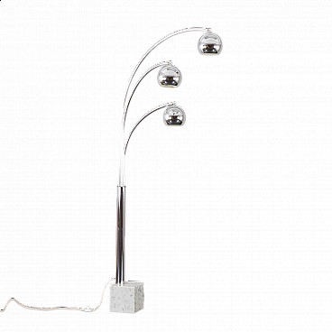 Floor lamp from the 1970s, consisting of three metal towers with three large Murano glass diffusers in shades of blue, light blue and white. Central body in metallic light grey. Completely professionally restored, fully functional. Will be shipped in two separate packages, absolutely protected and courier-proof.