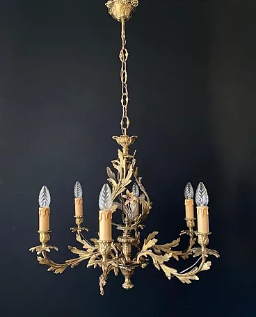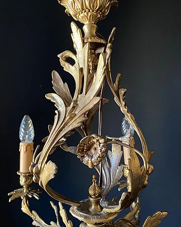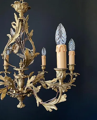 Chandelier in bronze and brass with floreal decorations, 1930s