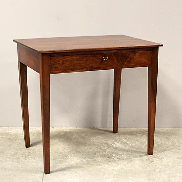 Table - Directorate In solid walnut, with drawer End of early 19th century - Directory Origin Italy Measures: width 87 cm, depth 56 cm, height 79 cm Restored (see photo)